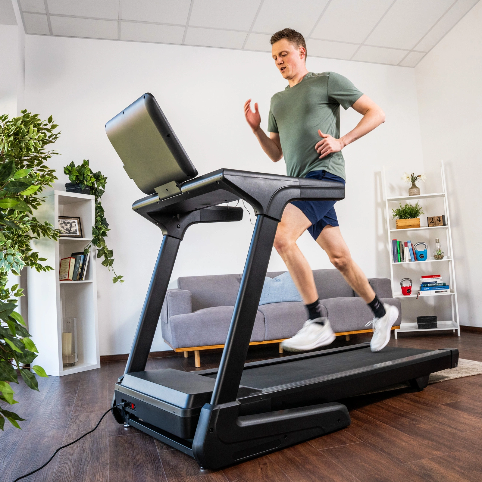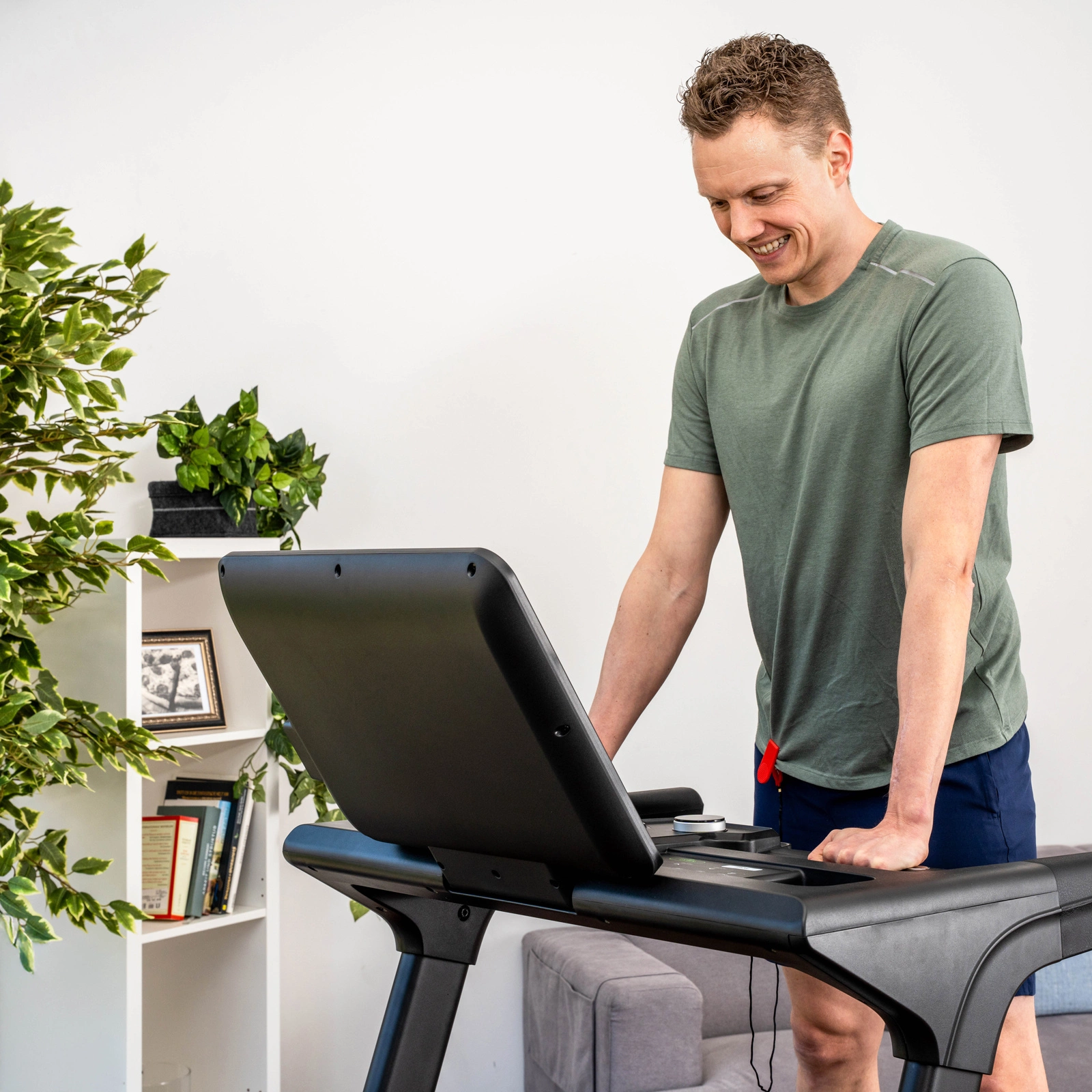Bieżnia została wyposażona w konsolę z dużym ekranem LCD o przekątnej 15,6 cala, który wyświetla najważniejsze parametry treningowe:- czas