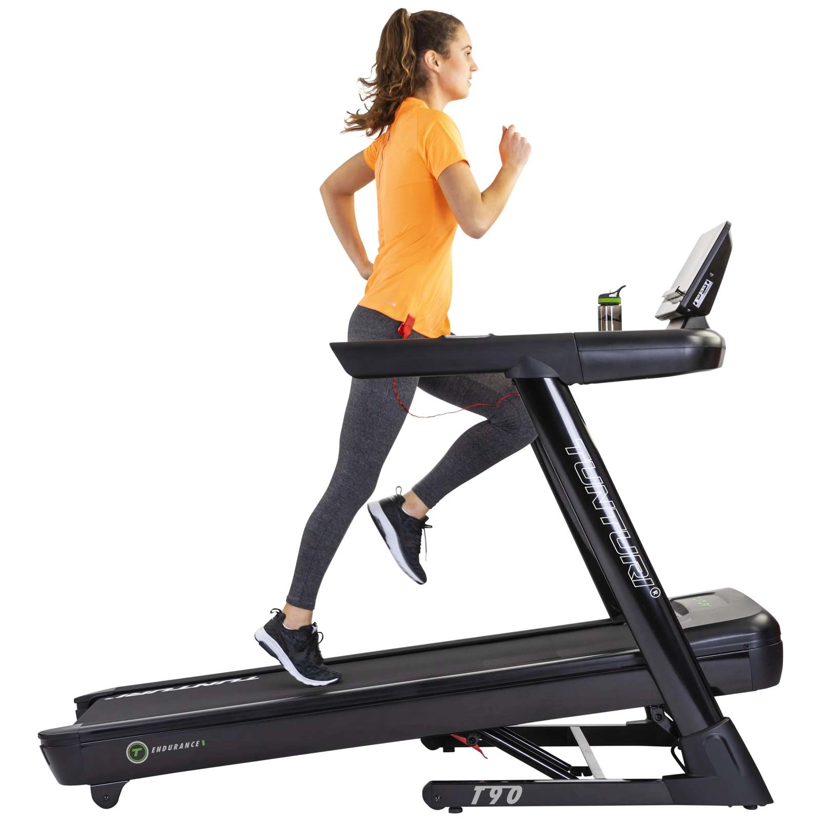 Tunturi Endurance T90 to bieżnia stworzona dla osób, które oczekują najwyższej jakości i niezawodności w każdym treningu. Wyposażona w mocny, przemysłowy silnik AC o prędkości maksymalnej 24 km/h, idealnie sprawdzi się zarówno dla zawodowych biegaczy, jak i osób rozpoczynających swoją przygodę z bieganiem czy rehabilitacją.