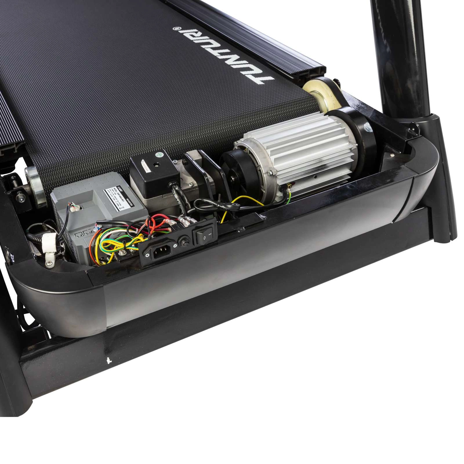 Bieżnia Tunturi Endurance T90 wyposażona jest w silnik AC (tłum. prąd przemienny), który zapewnia wyjątkową moc. W przeciwieństwie do standardowych bieżni z silnikami DC (tłum. prąd stały), bieżnia T90 oferuje trwałość i wydajność, które są niezbędne dla intensywnego użytkowania. Silnik nie wymaga konserwacji, co pozwala na bezproblemowe treningi przez wiele lat.