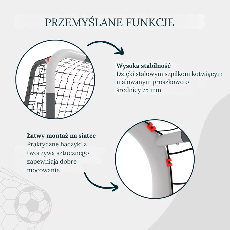 Praktyczny montaż siatki dzięki innowacyjnemu systemowi haków - szybkie i bezproblemowe przygotowanie do gry.