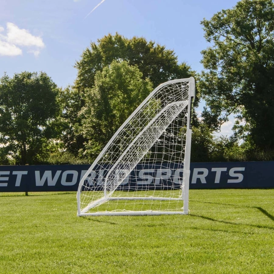 Bramka została wykonana z wytrzymałego uPVC ze specjalnie wzmocnionym tylnym profilem, co sprawia, że zachowuje pełną stabilność. Rama jest lekka, ale odporna na uderzenia piłki.Do zestawu dołączona jest siatka z HDPE 2 mm, poddana procesowi stabilizacji UV, dzięki czemu nie blaknie i nie zużywa się mimo ekspozycji na słońce i deszcz. Wzmocnione krawędzie gwarantują wieloletnią eksploatację.