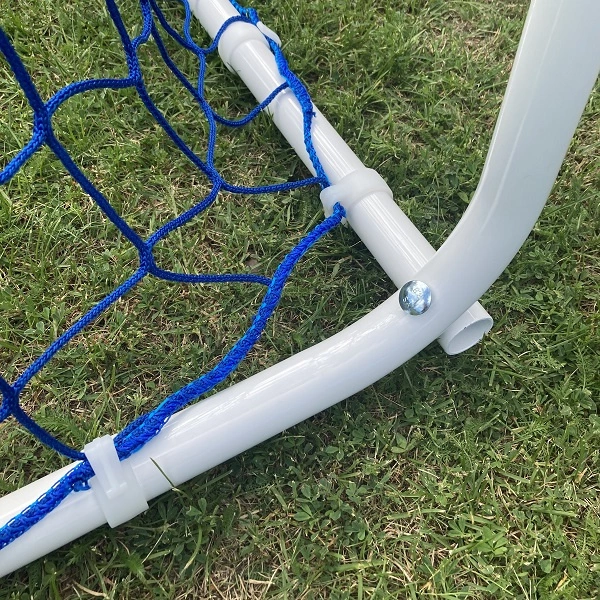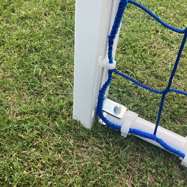 W zestawie z bramką znajduje się siatka wykonana z polipropylenu o oczku 10x10 cm i grubości linki 3 mm, co zapewnia trwałość i odporność na warunki atmosferyczne. Dołączone zapinki (30 szt.) oraz zaczepy (10 szt.) umożliwiające łatwy i szybki montaż siatki do światła oraz szkieletu bramki.
