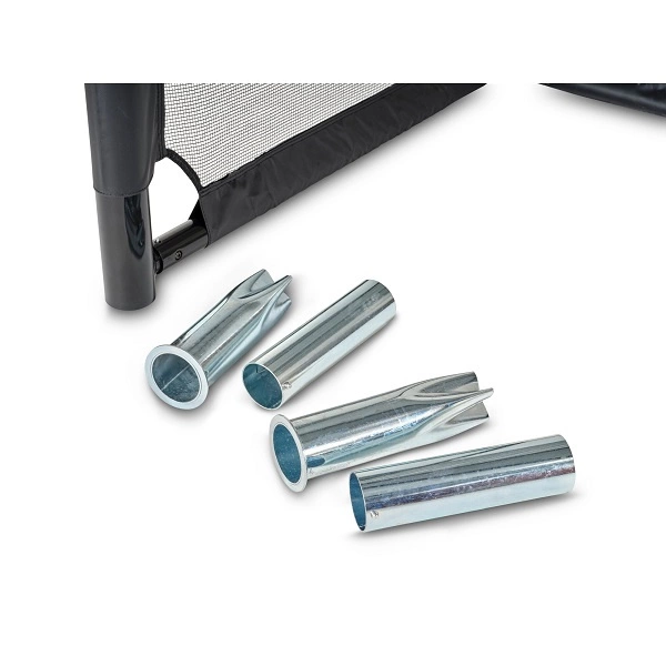 System tulejowania zastosowany w bramkach pozwala na łatwy montaż i demontaż na naturalnej nawierzchni. Tuleje montażowe zapewniają maksymalną stabilność w trakcie gry, a jednocześnie umożliwiają szybkie wyjęcie bramek – co jest szczególnie wygodne podczas koszenia trawy lub przestawiania sprzętu.