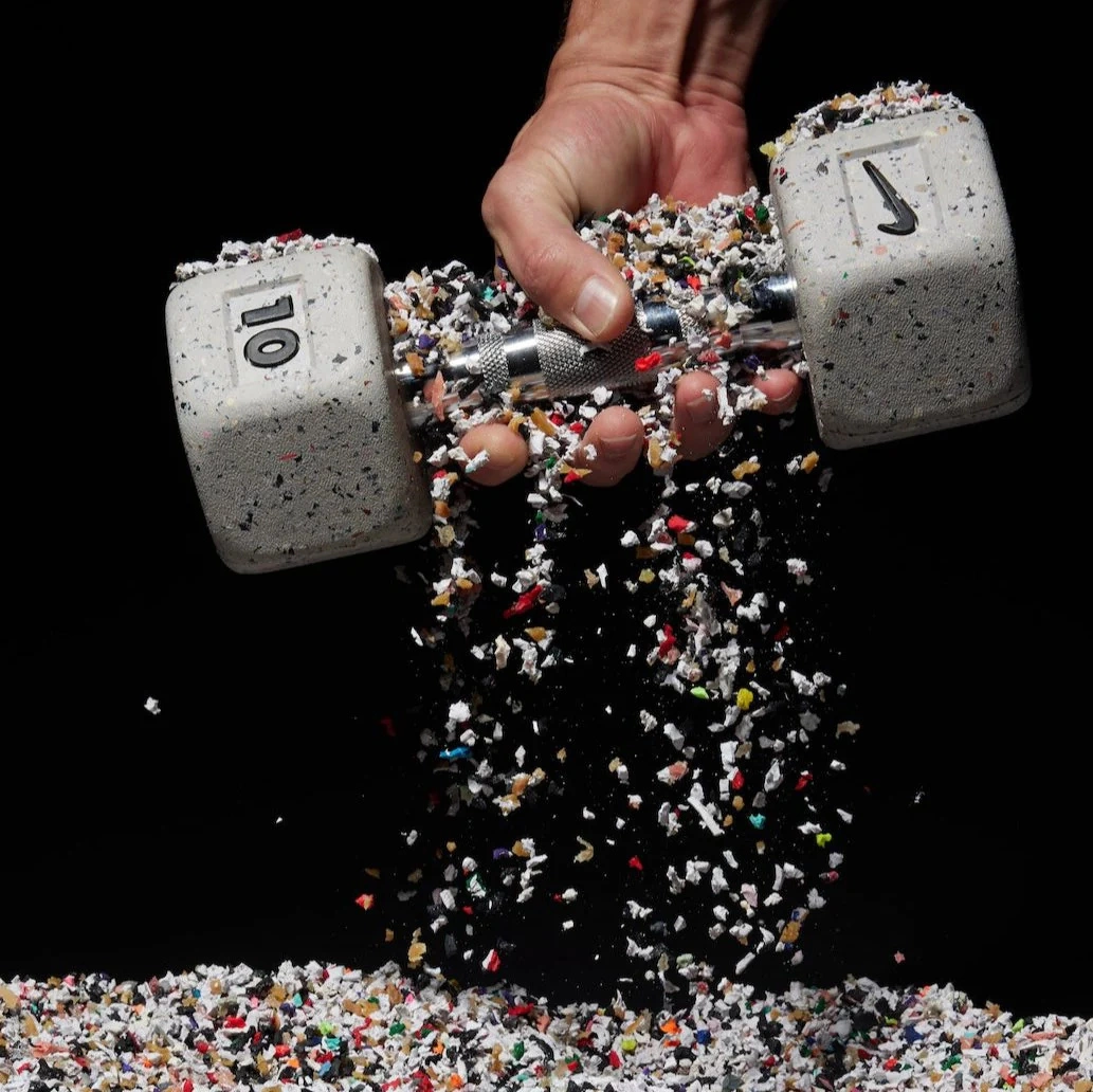 Uzyskany w ten sposób materiał, surowiec wtórny jest podstawowym elementem produktów, takich jak hantle Nike Grind Dumbbells i obciążenia Nike Grind Bumper Plates.