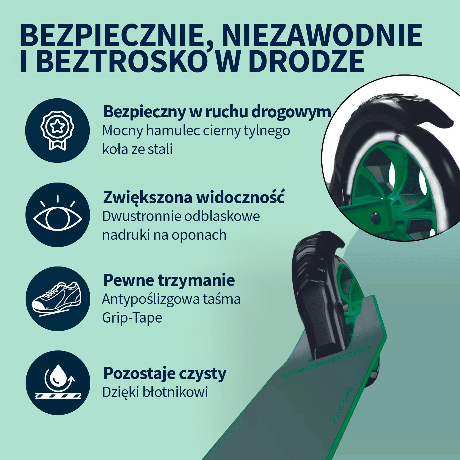 - Koła o średnicy 145 mm gwarantują płynną jazdę.