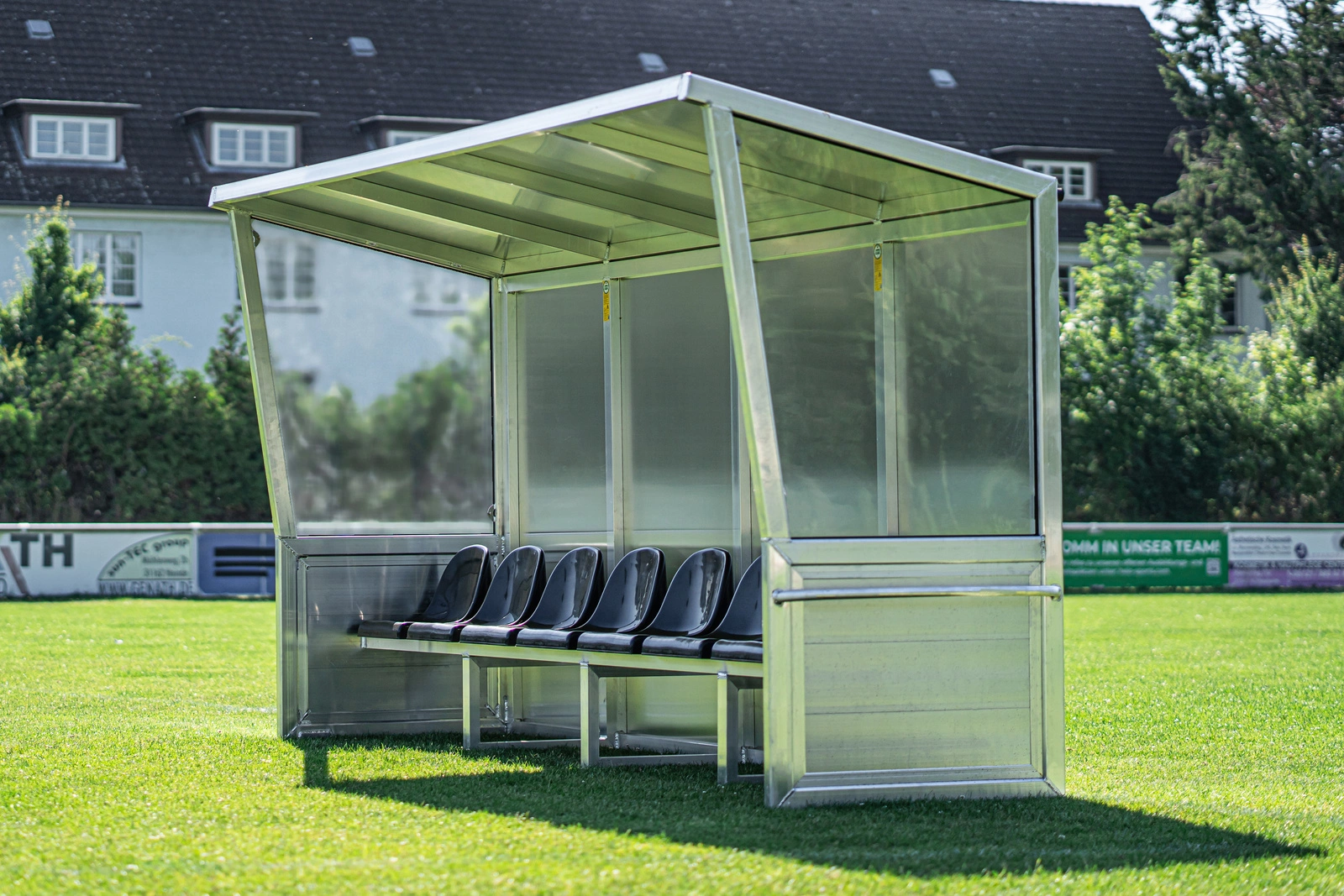 Ławka rezerwowych stworzona z myślą o miejscach narażonych na intensywną eksploatację i ryzyko uszkodzeń. To najbardziej zabudowane, odporne i antywandalowe rozwiązanie w naszej ofercie - stworzone po to, by przetrwać wszystko. Kabina wyróżnia się wyjątkowo solidną budową: tył i dach wykonane są w całości z aluminium, co znacząco zwiększa odporność na uderzenia oraz warunki atmosferyczne. Boki z 3-milimetrowego poliwęglanu zapewniają wysoką trwałość i zabezpieczenie przed wandalizmem, jednocześnie nie ograniczając widoczności. Wysokość konstrukcji ok. 2,0 m gwarantuje komfort i pełną ochronę zawodników.To idealny wybór dla obiektów, które wymagają maksymalnej wytrzymałości: szkół, boisk mocno eksploatowanych, terenów publicznych oraz miejsc szczególnie narażonych na uszkodzenia. Najsolidniejsza, najbardziej odporna i w pełni antywandalowa kabina.