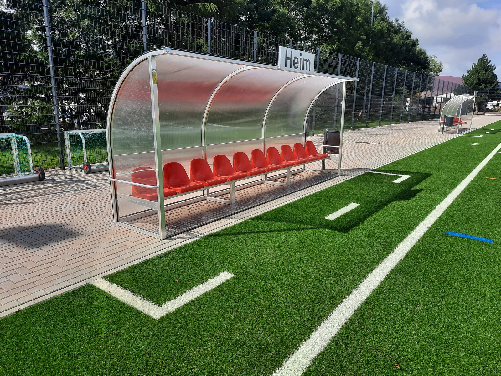 Ławka rezerwowych Champion to propozycja dla obiektów, które wymagają połączenia nowoczesnej estetyki, komfortu oraz profesjonalnego wyglądu.Konstrukcja wykonana jest ze spawanych profili aluminiowych, co zapewnia lekkość, trwałość i pełną odporność na warunki atmosferyczne. Boki z przejrzystego poliwęglanu 3 mm nadają konstrukcji elegancji, natomiast tylna ściana z matowego poliwęglanu komorowego 4,5 mm zapewnia większą prywatność zawodnikom oraz ogranicza nagrzewanie wnętrza w słoneczne dni. Jest to najwyższa kabina w naszej ofercie ma ok. 2,05 m wysokości, co przekłada się na lepszy komfort i większą przestrzeń użytkową. Wyposażona w wygodne, kubełkowe siedziska z oparciem.