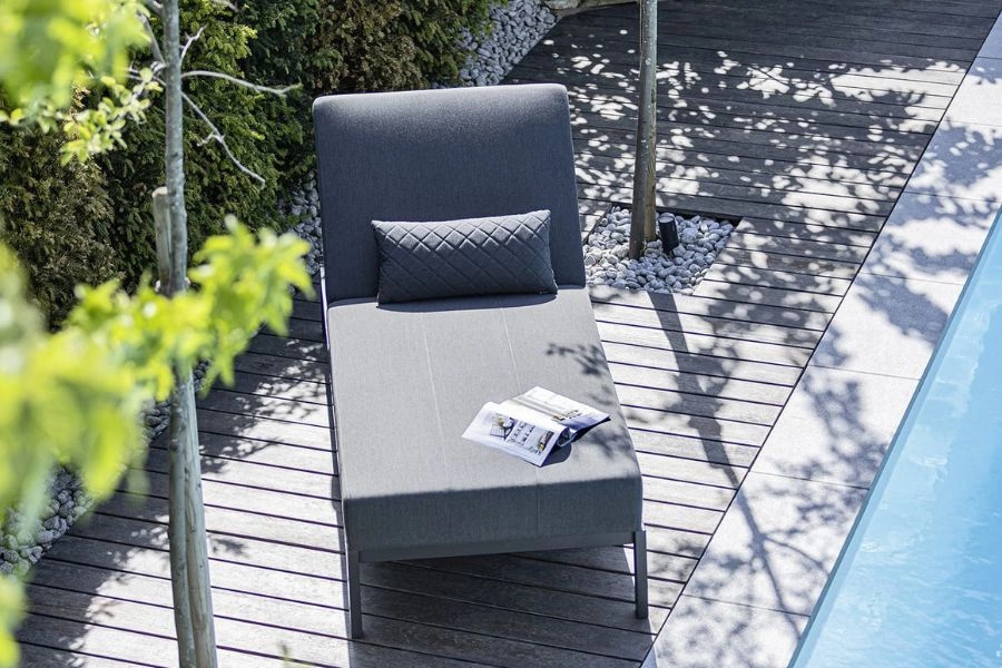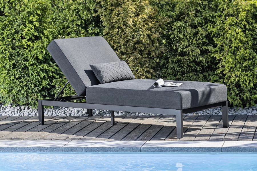 Leżak ogrodowy z serii PURE doskonale wpisuje się w nowoczesne, minimalistyczne ogrody i tarasy. Antracytowa aluminiowa rama z gładką tkaniną Sunbrella® w kolorze grafitowym tworzy harmonijną całość. Szezlong doskonale wkomponuje się w każdą przestrzeń, tworząc minimalistyczny, a jednocześnie luksusowy design.