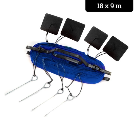 Linie do wyznaczania pola gry do siatkówki ze szpilkami i tabliczkami - niebieskie 18x9 m