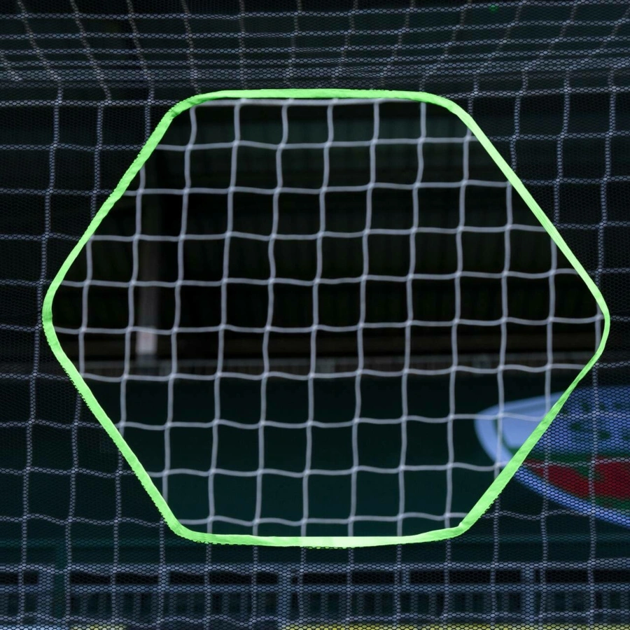- Wytrzymała siatka poliestrowa - odporna na uderzenia piłki nawet do 96 km/h, gwarantuje długotrwałe użytkowanie.