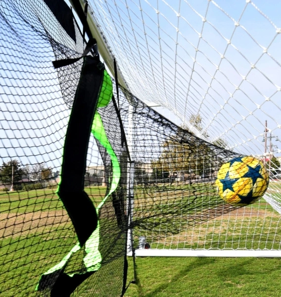 Mata pasuje na bramki o wymiarze 7,32 na 2,44 m i można ją łatwo zamocować za pomocą specjalnych gumek/zaczepów mocujących.