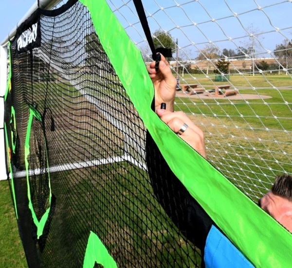Plandeka treningowa na bramkę marki QUICKPLAY to doskonały przyrząd treningowy dla zawodników, chcących poprawić swoją celność, technikę, a także wytrenować dokładność strzałów, podkręcenie itp.