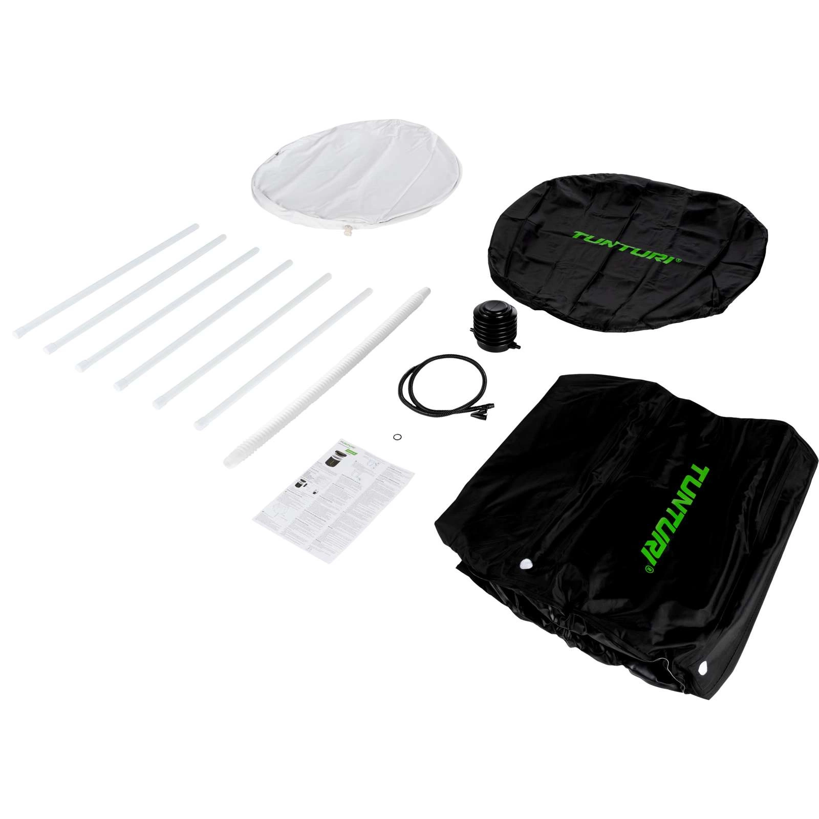 Do wanny Tunturi IB30 dołączono wszystko, czego potrzebujesz, aby zachować idealne warunki do kąpieli. Pokrywa termiczna skutecznie utrzymuje zimną i czystą wodę, a odporna na warunki atmosferyczne osłona chroni wnętrze wanny przed liśćmi, gałęziami i innymi zanieczyszczeniami. Dodatkowo nadmuchiwany rant wzmacnia konstrukcję i zapewnia jej stabilny, zaokrąglony kształt. Dzięki temu wanna zawsze pozostaje gotowa na kolejną sesję.