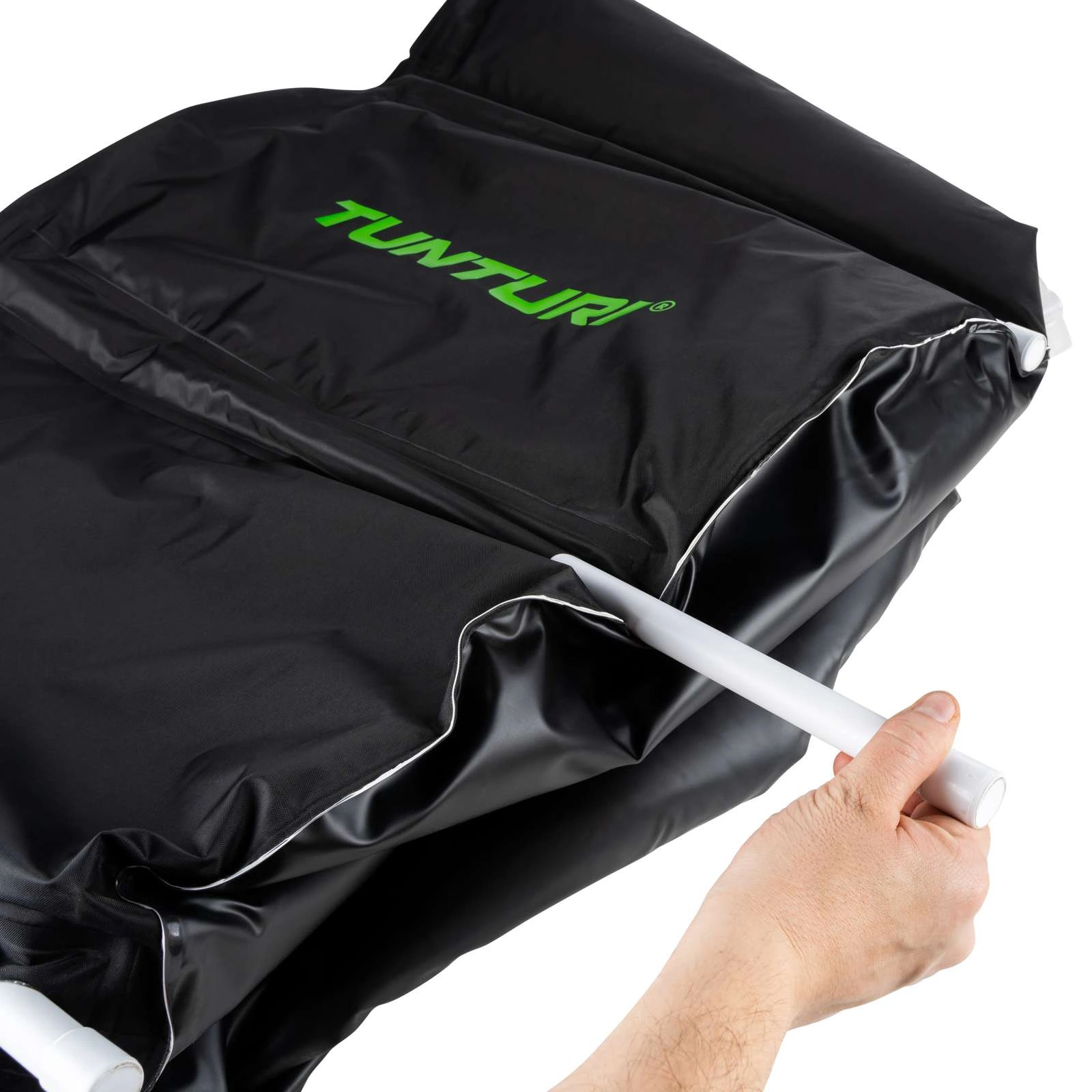 Do wanny Tunturi IB30 dołączono wszystko, czego potrzebujesz, aby zachować idealne warunki do kąpieli. Pokrywa termiczna skutecznie utrzymuje zimną i czystą wodę, a odporna na warunki atmosferyczne osłona chroni wnętrze wanny przed liśćmi, gałęziami i innymi zanieczyszczeniami. Dodatkowo nadmuchiwany rant wzmacnia konstrukcję i zapewnia jej stabilny, zaokrąglony kształt. Dzięki temu wanna zawsze pozostaje gotowa na kolejną sesję.