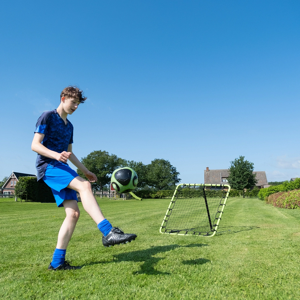 Rebounder EXIT Tempo jest wyjątkowo lekki i mobilny – można go łatwo przestawiać i transportować. Dzięki temu trenujesz tam, gdzie masz ochotę – w ogrodzie, na boisku lub na hali.
