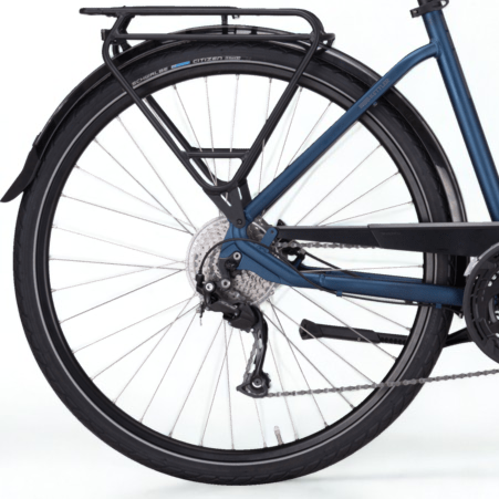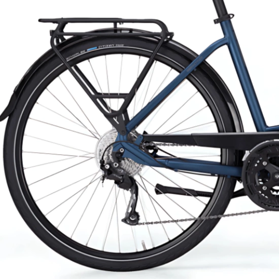 Przemyślana geometria ramy zapewnia wygodną, wyprostowaną pozycję jazdy, a bogate wyposażenie – w tym oświetlenie w piaście, bagażnik MonkeyLoad, hamulce tarczowe i możliwość montażu przedniego kosza QUADRIGA – gwarantuje komfort i bezpieczeństwo w każdych warunkach.