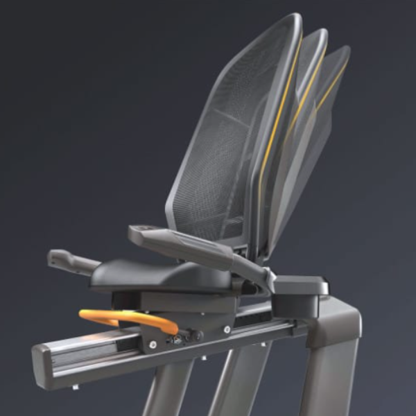Wyjątkowo duże, opuszczane oparcie podnosi komfort ćwiczeń, a jego profilowana, siatkowa konstrukcja zapewnia skuteczną wentylację i chroni przed przegrzaniem podczas treningu. Ergonomicznie zaprojektowane siedzisko Comfort Arc oferuje doskonałe podparcie, wygodę i stabilność, gwarantując pełen komfort nawet podczas intensywnych sesji.
