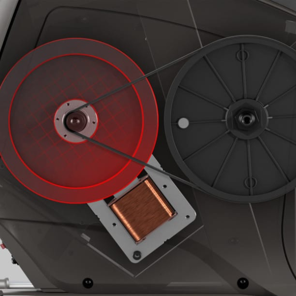 Exact Force: Hamulec indukcyjny zapewnia natychmiastową, płynną i precyzyjną zmianę oporu za pomocą jednego przycisku. Dzięki zastosowaniu nowoczesnej technologii bez ruchomych części, system działa wyjątkowo cicho, minimalizując hałas nawet podczas intensywnego treningu, a jego konstrukcja gwarantuje wysoką trwałość i niezawodność przez długi czas użytkowania.
