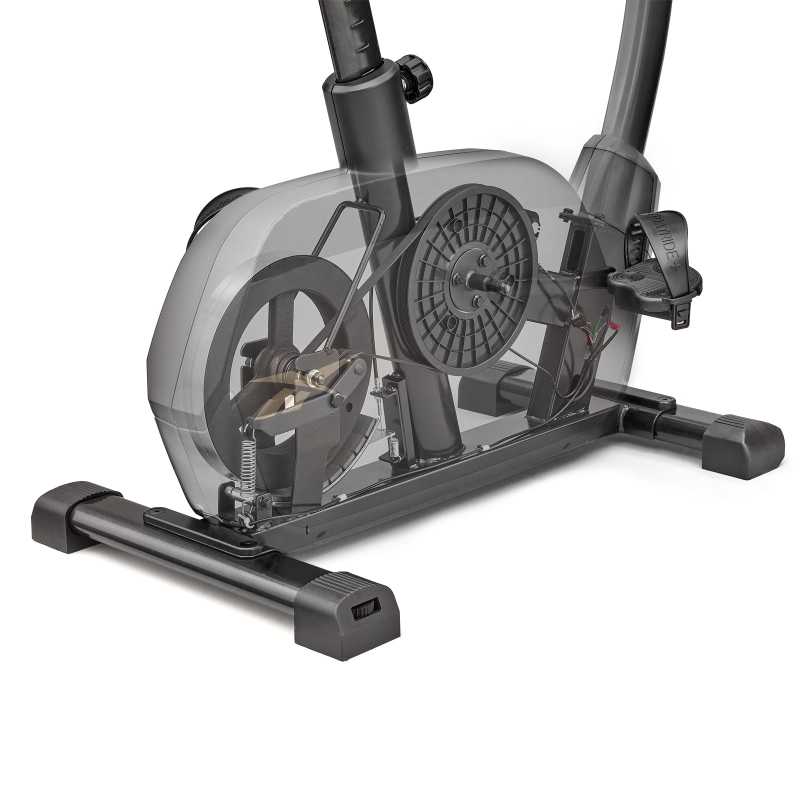 Ergonomiczne siodełko, które oferuje regulację zarówno w pionie, jak i poziomie, pozwala na idealne dopasowanie do indywidualnych potrzeb użytkownika. Niezależnie od długości treningu, zapewnia wygodną pozycję, co sprzyja efektywności ćwiczeń i minimalizuje ryzyko kontuzji. Samopoziomujące się pedały z regulowanymi paskami zapewniają optymalne dopasowanie do stopy użytkownika, co znacząco zwiększa komfort podczas jazdy i minimalizuje ryzyko poślizgnięcia.