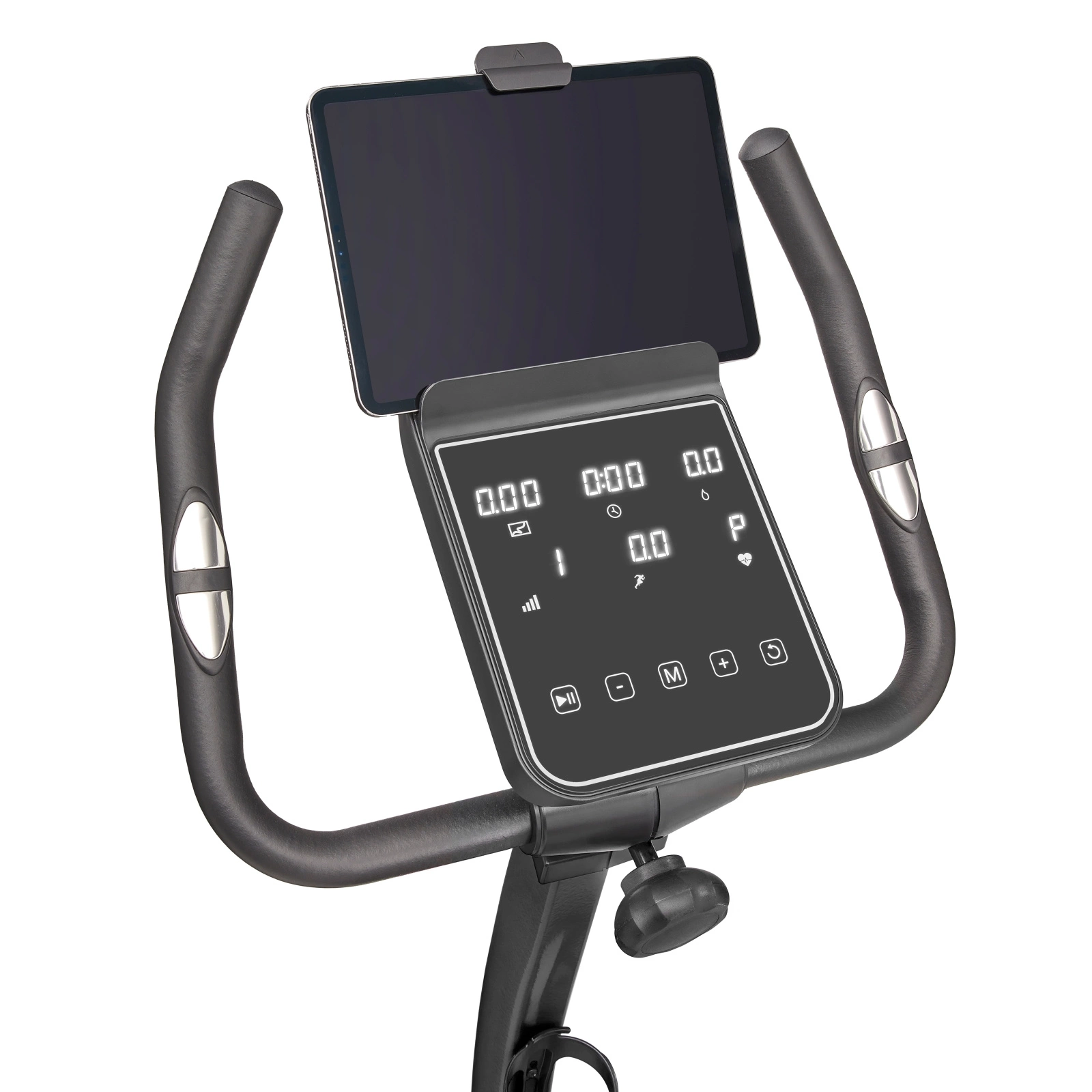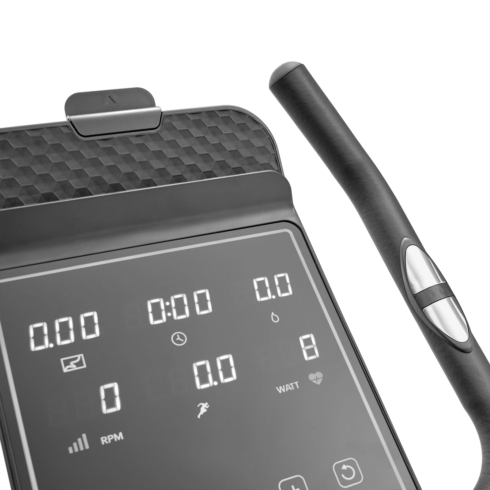 - Zintegrowane czujniki pulsu w kierownicy - Dostarczają bieżące dane o tętnie, co co pozwala na bieżąco śledzić intensywność wysiłku.