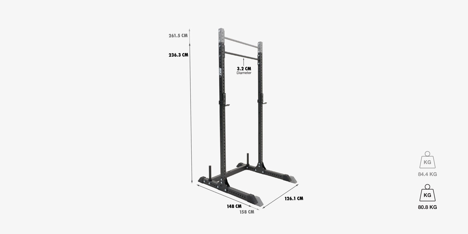 Rama ze stali o przekroju 75x75 mm i grubości 3 mm zapewnia wyjątkową trwałość. Odporność na obciążenia czyni ten stojak niezastąpionym w każdej siłowni, nawet domowej.