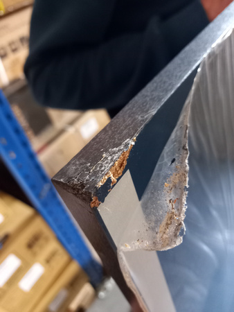 - Oba blaty są wyszczerbione na rogach - niewpływające na użytkowanie stołu