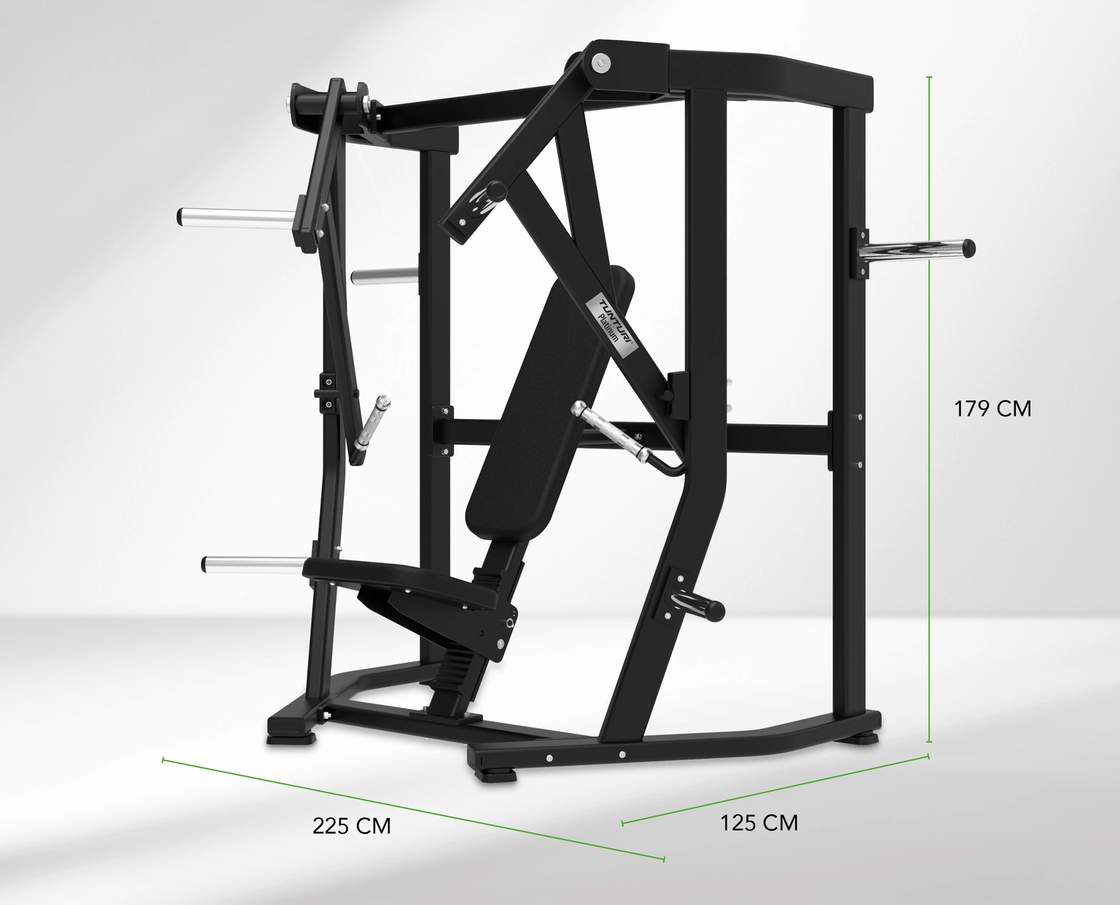 Wide Chest Press z serii Platinum V działa na zasadzie załadunku wolnych ciężarów (plate-loaded), co zapewnia swobodę i progresywność treningu. Szeroki chwyt minimalizuje udział tricepsów, pozwalając lepiej skoncentrować się na klatce piersiowej i barkach.Dzięki ruchomym ramionom możesz ćwiczyć każdą stronę ciała osobno lub razem - co daje większą kontrolę i efektywność treningu. Dodatkowe uchwyty na talerze pozwalają na ich wygodne przechowywanie w zasięgu ręki.