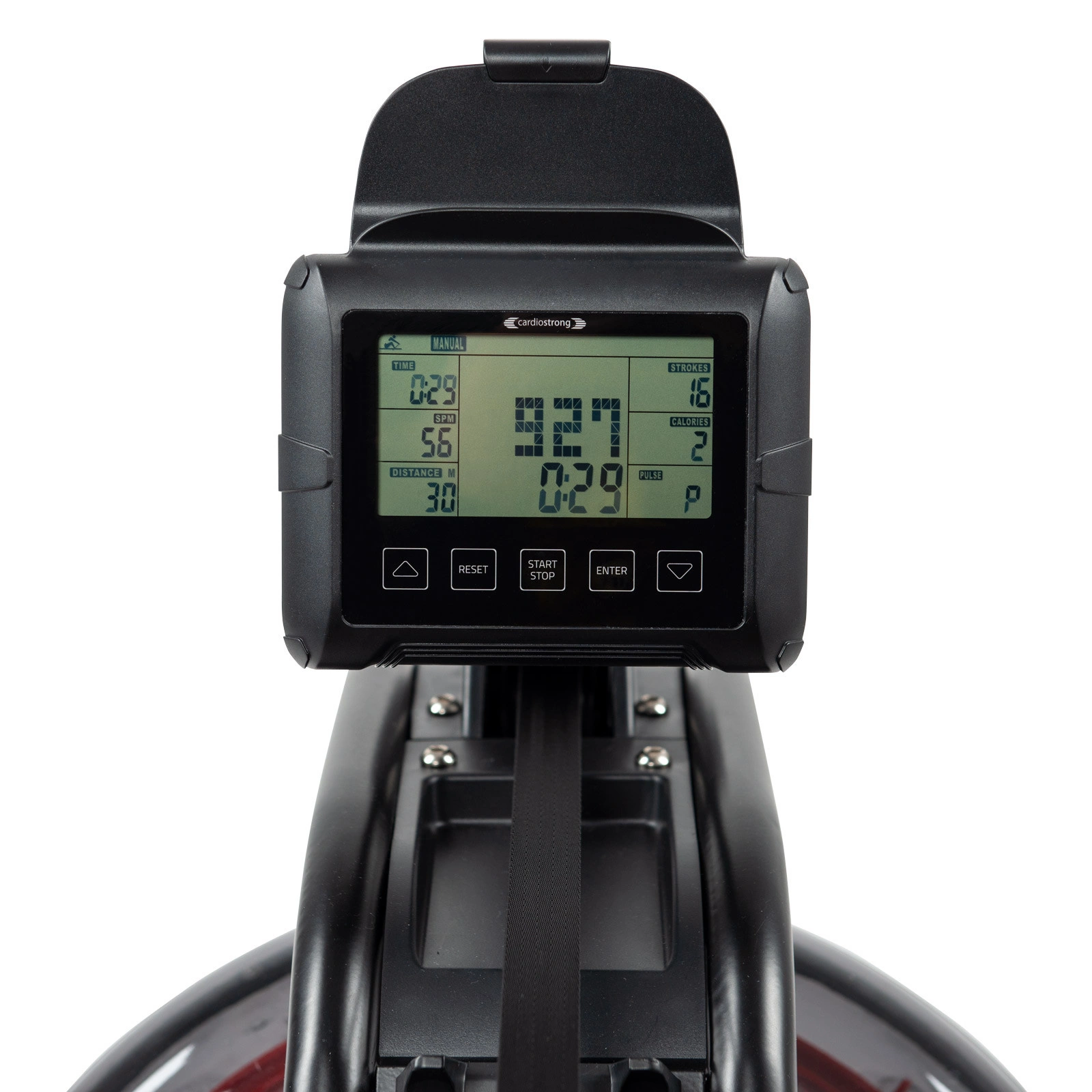 Wioślarz Cardiostrong Baltic Rower Pro wyposażony jest w konsolę z wyświetlaczem, który pozwala kontrolować wszystkie parametry treningu w czasie rzeczywistym. Na ekranie możesz śledzić:- czas