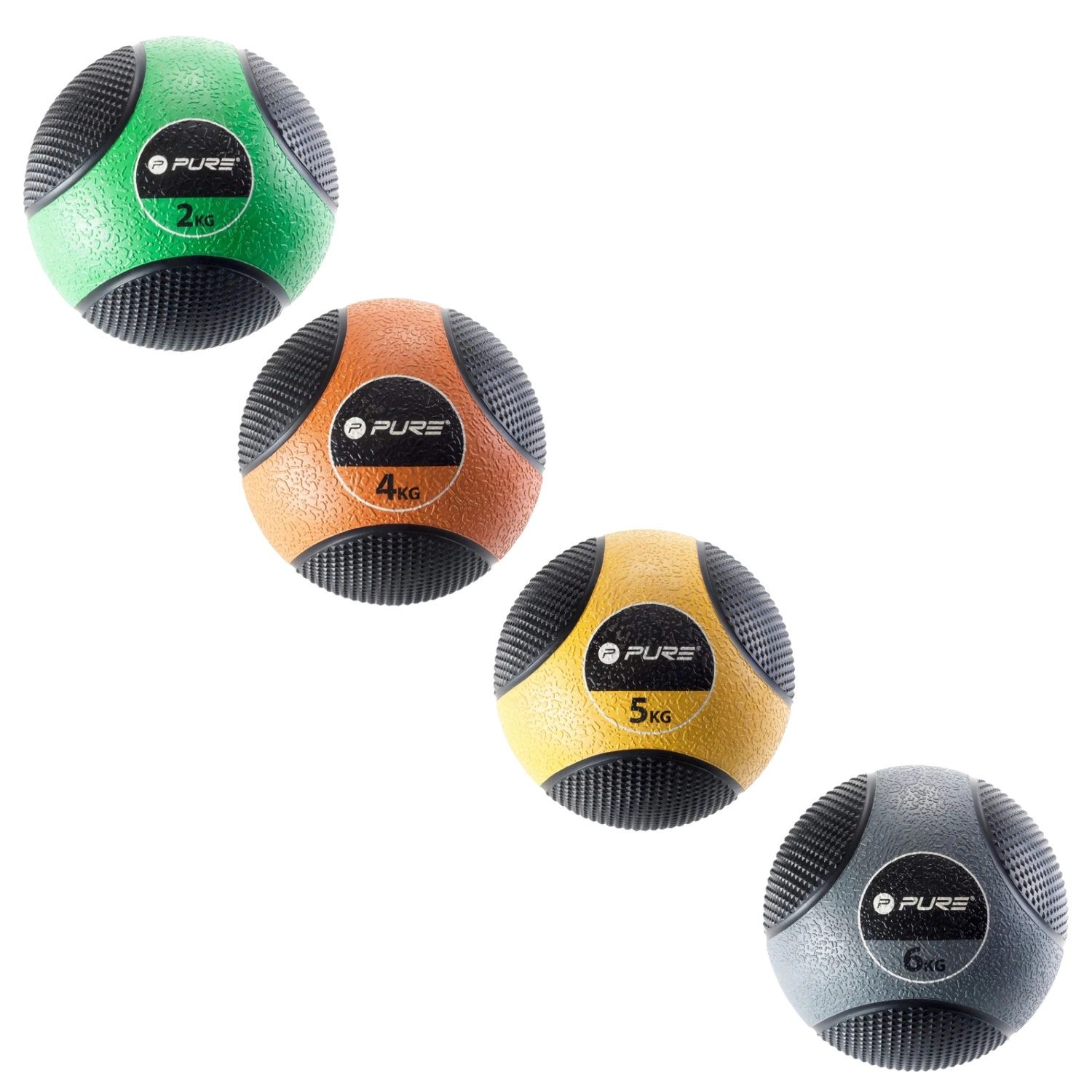 W zestawie znajdują się cztery piłki różniące się wielkością i ciężarem: najmniejsza ma 18 cm średnicy i waży 2 kg, kolejne to 21 cm / 4 kg oraz 24 cm / 5 kg, a największa osiąga 26 cm przy wadze 6 kg. Dzięki temu zestaw daje możliwość stopniowego zwiększania intensywności treningu i dopasowania piłki do rodzaju ćwiczeń.