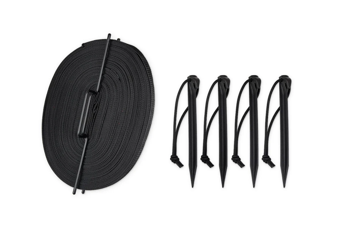• Elastyczne mocowania i plastikowe kołki, bezpieczne i odpowiednie do piasku i trawy.