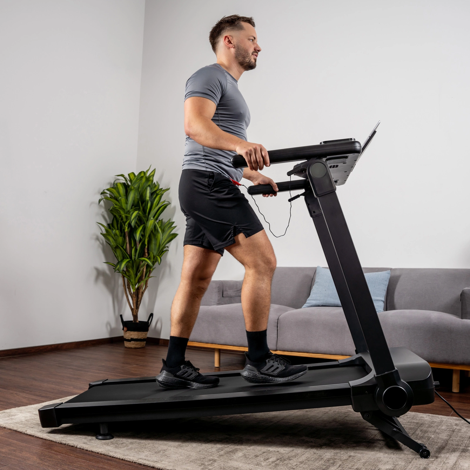Duży uchwyt na tablet ułatwia rozrywkę lub interaktywne biegi (tablet nie jest częścią zestawu), a cichy bezszczotkowy silnik 2 KM pracuje wydajnie i energooszczędnie.
