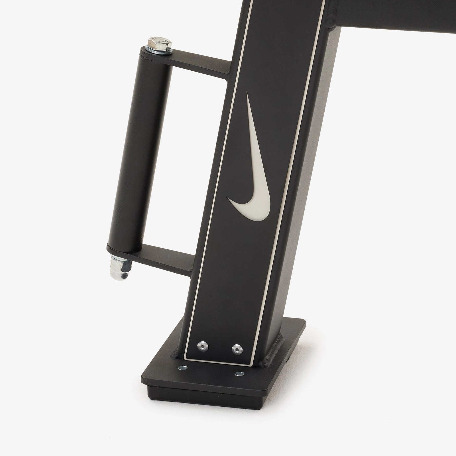Ławka Nike łączy solidną stalową konstrukcję z praktycznymi kółkami transportowymi. Po treningu możesz ją szybko postawić pionowo i schować – idealna do mniejszych przestrzeni.