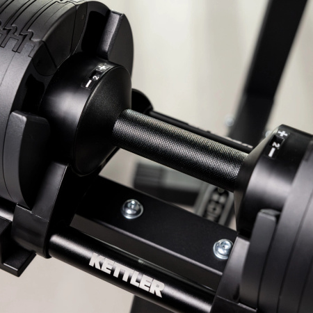 Zestaw KETTLER HOI Vario 220 to idealne rozwiązanie dla osób, które chcą trenować efektywnie, oszczędzając przy tym miejsce. Dzięki płynnej regulacji ciężaru od 2 do 20 kg (co 2 kg), hantle zastępują aż 10 par tradycyjnych hantli. To znakomita opcja do ćwiczeń całego ciała – w domu i w profesjonalnym otoczeniu.