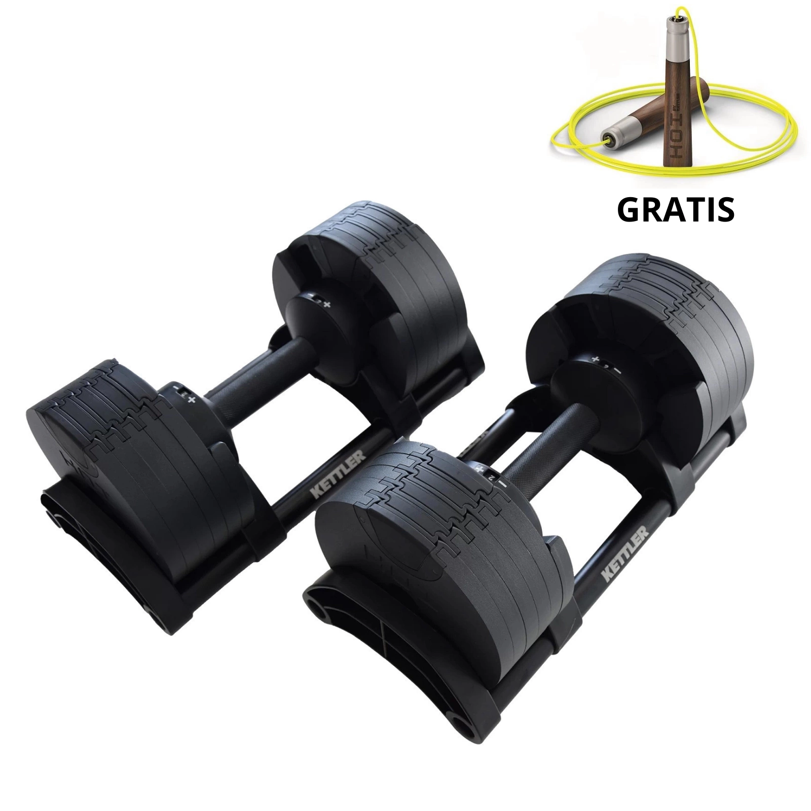 Zestaw KETTLER HOI Vario 220 to idealne rozwiązanie dla osób, które chcą trenować efektywnie, oszczędzając przy tym miejsce. Dzięki płynnej regulacji ciężaru od 2 do 20 kg (co 2 kg), hantle zastępują aż 10 par tradycyjnych hantli. To znakomita opcja do ćwiczeń całego ciała – w domu i w profesjonalnym otoczeniu.